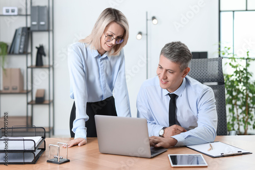 Middle aged employees working together in office