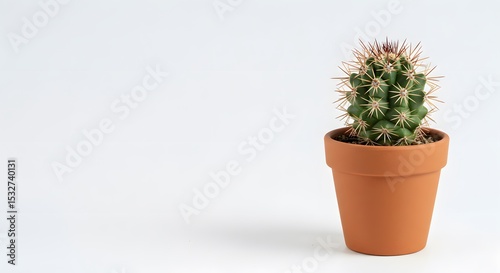 Mini Cactus Plant in Terracotta Pot on White Background