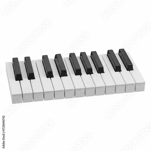 Miniature Piano Keyboard Keys Isolated on White Background.
