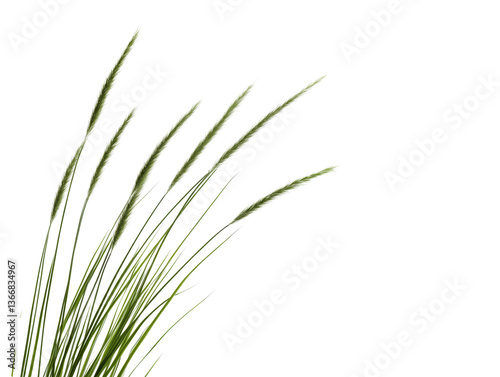 Minimalist Green Grass Stalks Against White Background: Nature's Simplicity and Elegance