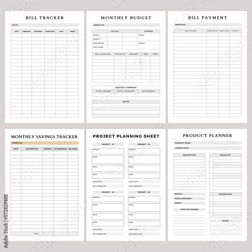 Minimalist planner pages templates. Printable Life & Business Planner Set. Life and business planner. Bill Tracker, bill Payment, Monthly Savings Tracker, subscription Tracker, project planning sheet