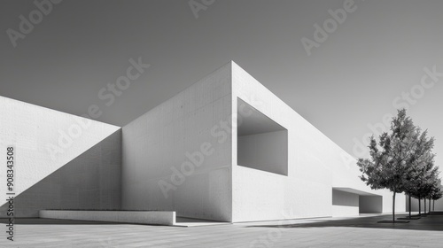 Minimalist white building with sharp angles and shadow play