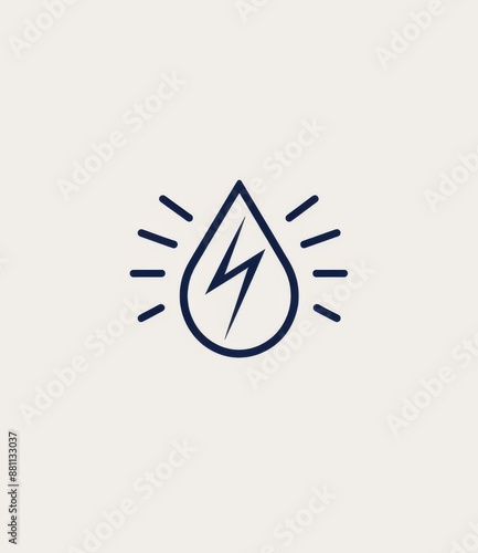 Minimalistic vector logo of a water droplet with a lightning bolt, symbolizing energy storage technology, in blue and white on a clean background