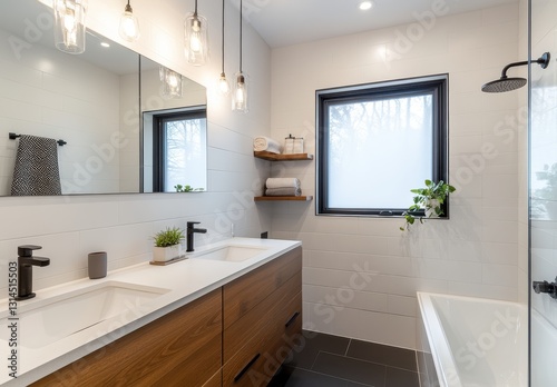 Modern Bathroom Interior with Elegant Fixtures, Natural Light, and Stylish Design Elements in Soft Tone Colors and Minimalist Aesthetic