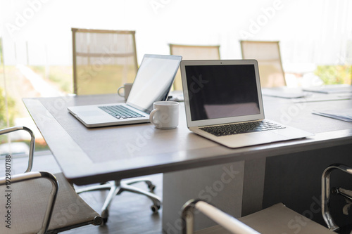 Modern Contracted Office interiors.In selective focus with perspective. Setup studio shooting.