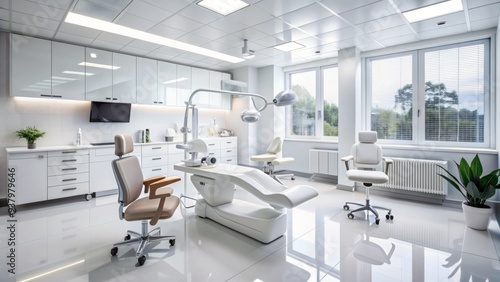 Modern dental clinic with state-of-the-art equipment and a clean white interior, providing a comfortable and sterile environment for patients to receive quality care.