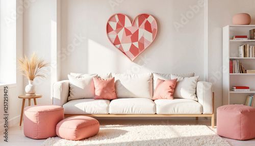 Modern heart-shaped art in cozy minimalist room, love and warmth