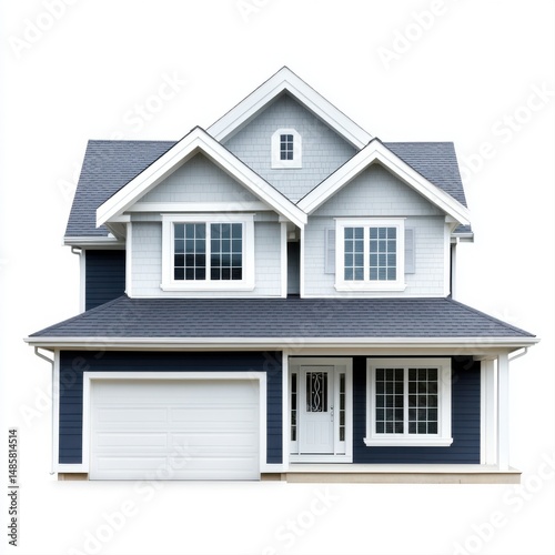 Modern Residential Home with Gray and Blue Exterior and Elegant Architectural Features