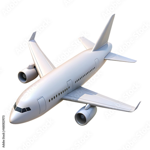 Modern white passenger jet airplane flying isolated on white background