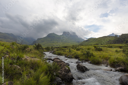 Mountain stream and clouds