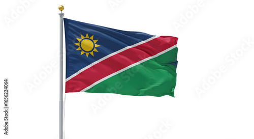 Namibia national flag waving on flagpole isolated on white background, symbol of independence and patriotism, perfect for cultural and political themes