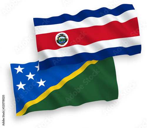 National vector fabric wave flags of Republic of Costa Rica and Solomon Islands isolated on white background. 1 to 2 proportion.