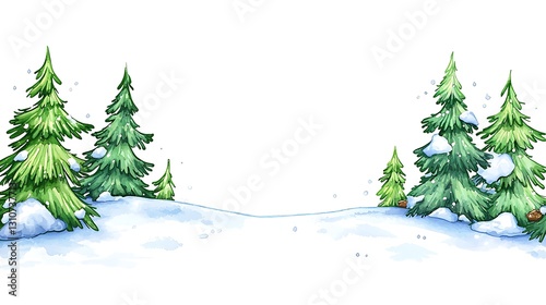 Nature watercolor style illustration of snowy pine trees in a winter landscape