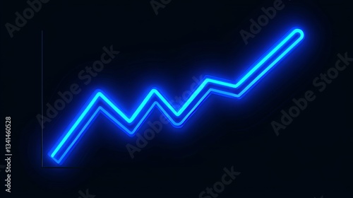 Neon Blue Upward Trending Line Graph on Dark Background, Minimalist Financial Chart Illustration