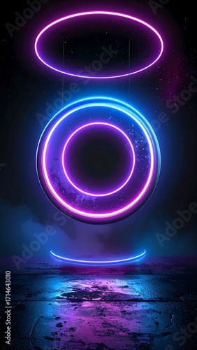 Neon rings in dark futuristic space
