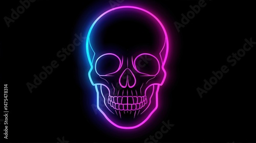 Neon Skull Design Glowing with Pink and Blue Lights on a Black Background for Halloween, Parties, and Artistic Projects