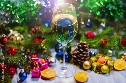New Year's and Christmas decorations and drinks.