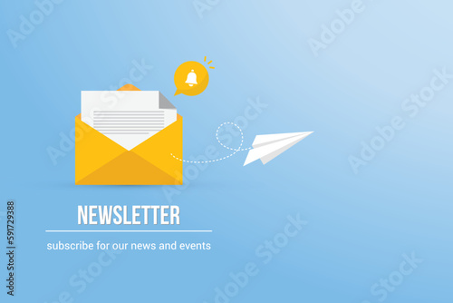 Newsletter. vector illustration of email marketing. subscription to newsletter, news, offers, promotions. a letter and envelope. subscribe, submit. send by mail.