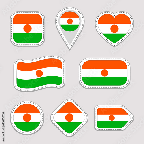 Niger flag vector set. Nigerian national flags stickers collection. Vector isolated geometric icons. Web, sports pages, patriotic, travel, school, geographic design elements. Different shapes