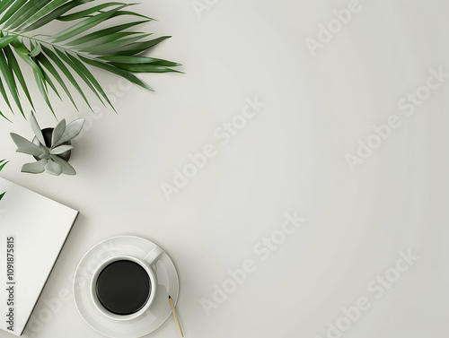 Office Deck and Office table hero image, Home office workspace mockup with laptop, clipboard, coffee cup. Office table top view hero image