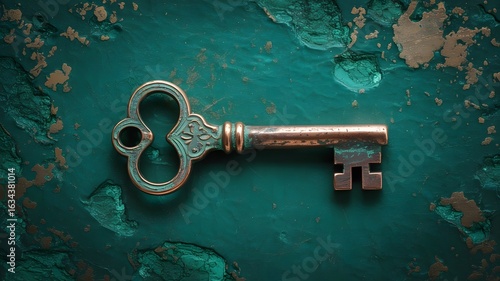 old rusty key on old door