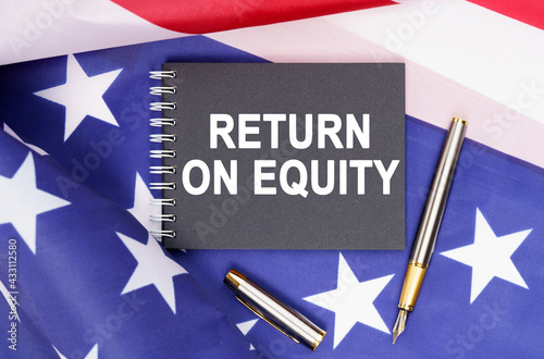On the table is an American flag, a pen and a notebook with the inscription - RETURN ON EQUITY