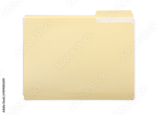 One paper file folder isolated on white, top view