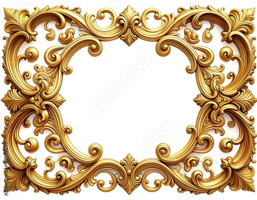 Ornate, golden, baroque-style decorative frame, with scrolling flourishes and symmetrical design