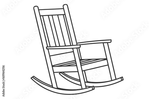 Outline Drawing of a Wooden Rocking Chair on White Background furniture