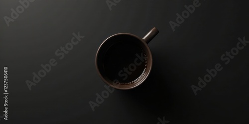 Overhead View of Dark Brown Mug Filled with Coffee on Dark Surface