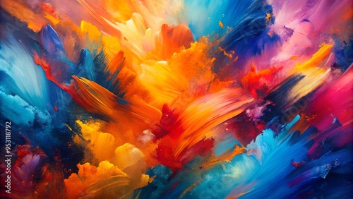 Painterly texture abstract background using bold bright brushstrokes with a contrasting color palette