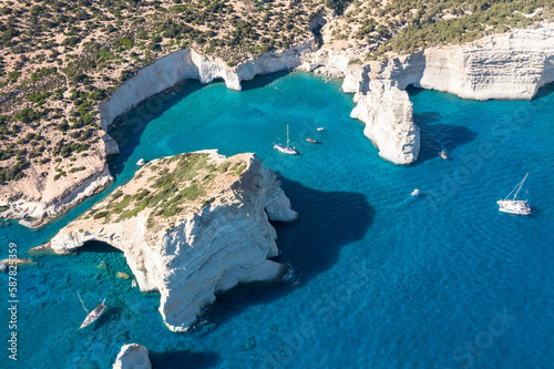 Panoramic view of Kleftiko Bay, Milos island, Cyclades, Greece