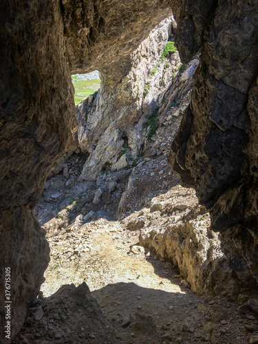 Panoramic view of the rocky arch of Greina, Switzerland.