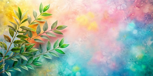 Pastel Watercolour Background with Leaves and Branches for Elegant Product Photography