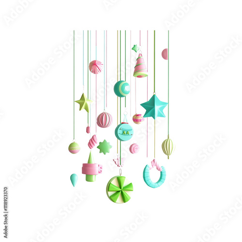 Pastel-Colored Hanging Christmas Ornaments, Festive Holiday Decorations