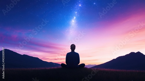 Person meditating under starry sky