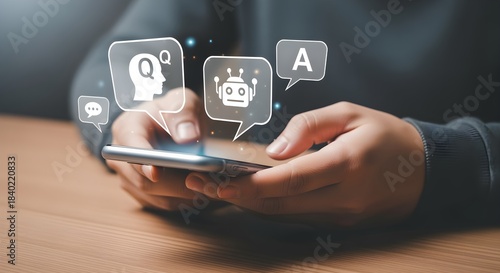 Person using smartphone for AI-powered Q&A, chatbot assistance and digital interaction