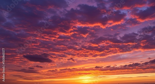 Photo of Fiery Sunset Sky with Red Orange and Purple Clouds Background