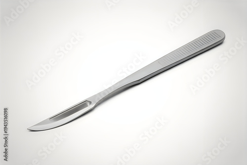 Photorealistic stainless steel surgical scalpel on white background medical instrument