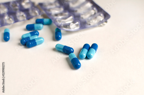 pills scattered on a white background