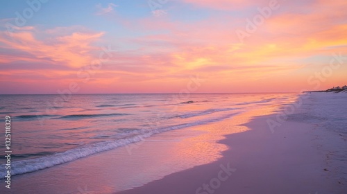 Pink And Orange Sunset Over Calm Ocean Beach
