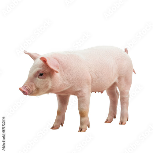 Pink piglet standing side profile view, looking left, isolated on transparent background