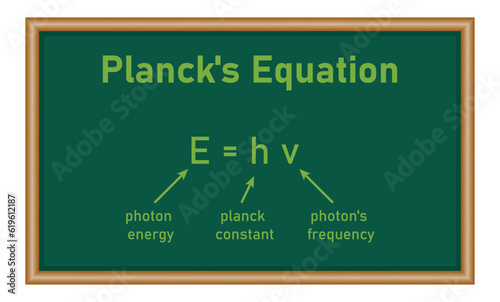 Planck's equation in physics. Photon energy, Planck constant and photon's frequency. mathematics resources for teachers.