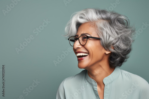 Portrait of a senior Indian ethnic woman with a cheering face