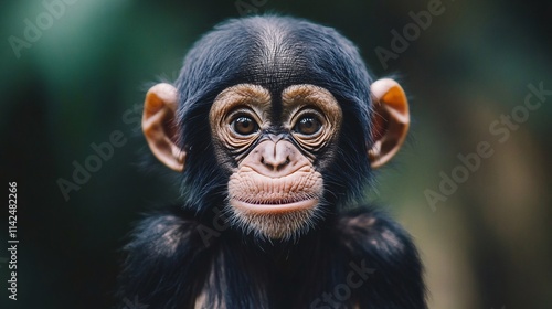 Portrait of baby chimpanzee observing the world with curious eyes