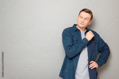 Portrait of focused positive mature man thinking and making choice