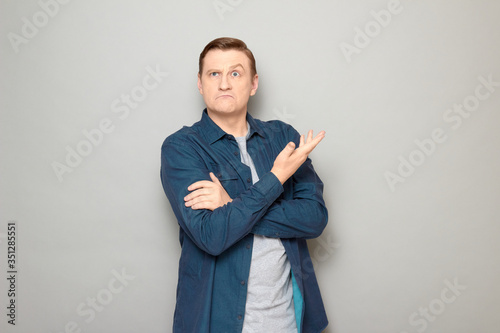 Portrait of man voicing his thoughts and actively gesturing with hand