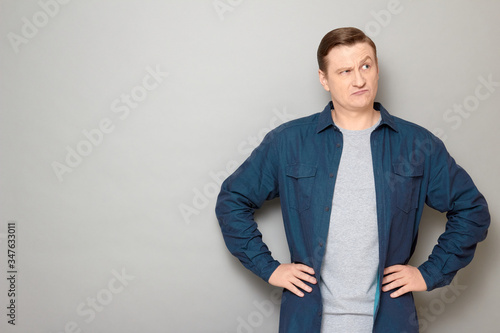 Portrait of serious puzzled mature man thinking hard and making choice