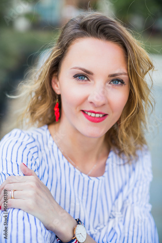 Portrait of young charming woman outdoors