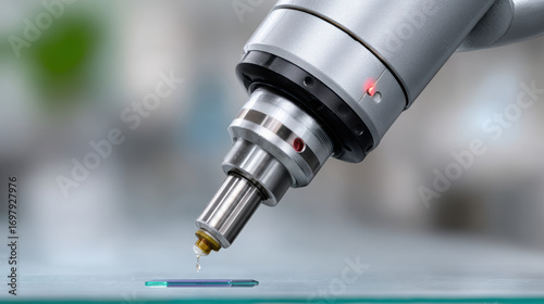 Precision robotic arm manufacturing microchip part of renewable energy infrastructure project that requires significant funding for technological advancement